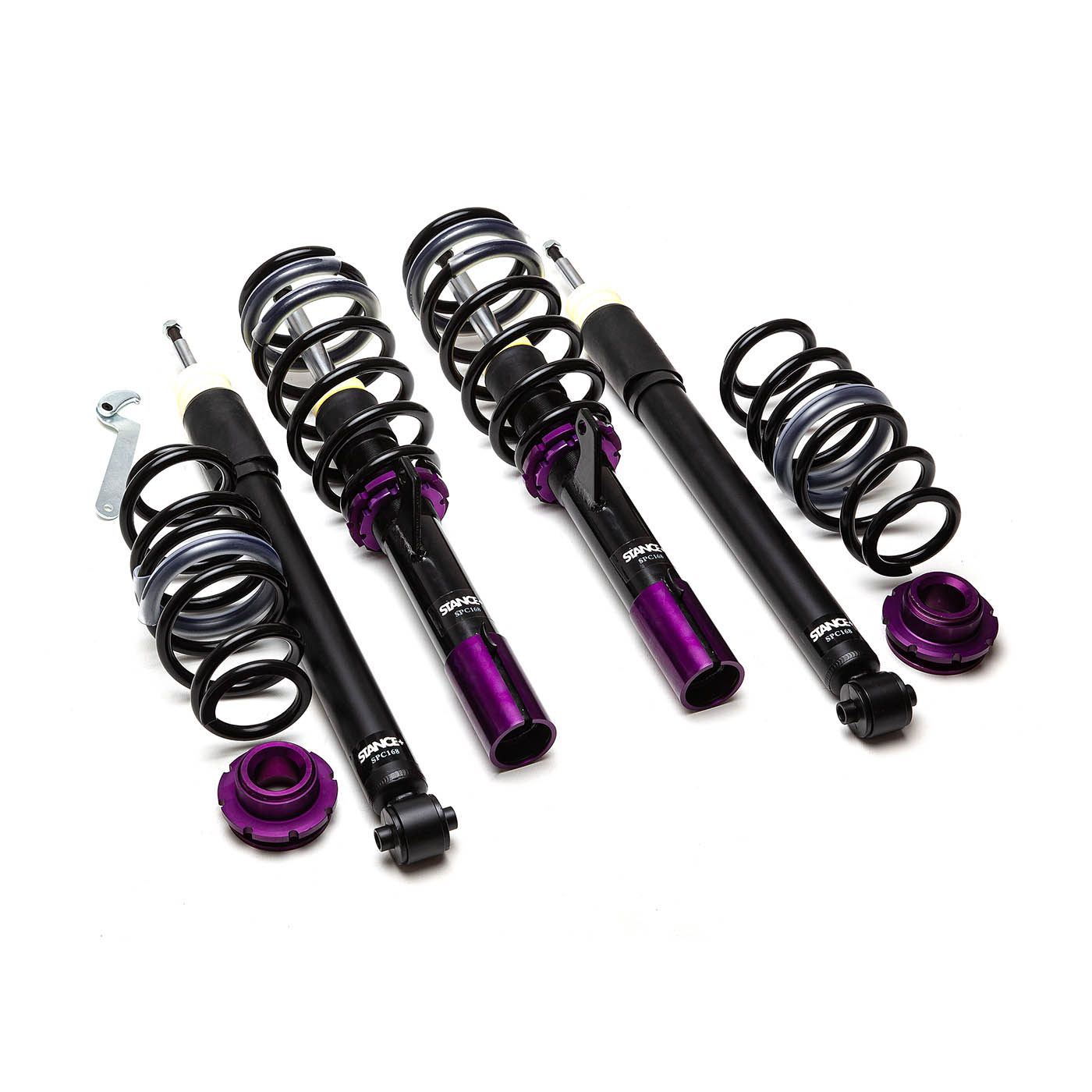 The Stance+ Street ride height adjustable Coilover suspension kits have been engineered and built to a very high standard. The units are made from Steel and powder coated Black to help weather protection. The kits are made exclusively for Stance+ and are meticulously inspected throughout the build process ensuring you get the very best quality suspension possible.